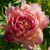 Гибрид (herbaceous hybrid ("Officinalis rosea plena x Lactiflora)) Махровый, бомбовидный, очень плотно "набитый". Ярко-лососево-розовый в начале цветения. Затем внешние края лепестков светлеют, оставляя насщенный цвет внутри. Необычный эффект! Толстые стебли слегка изгибаются. Высота 85см. Ранний. | |