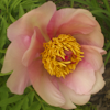 Молочноцветковый (lactiflora). Японской формы. Двухрядный, чашевидный, из крупных зазубренных лепестков. Палево-розовый. Стаминодии желтые. Средне-поздний. Размер цветка 17см. |